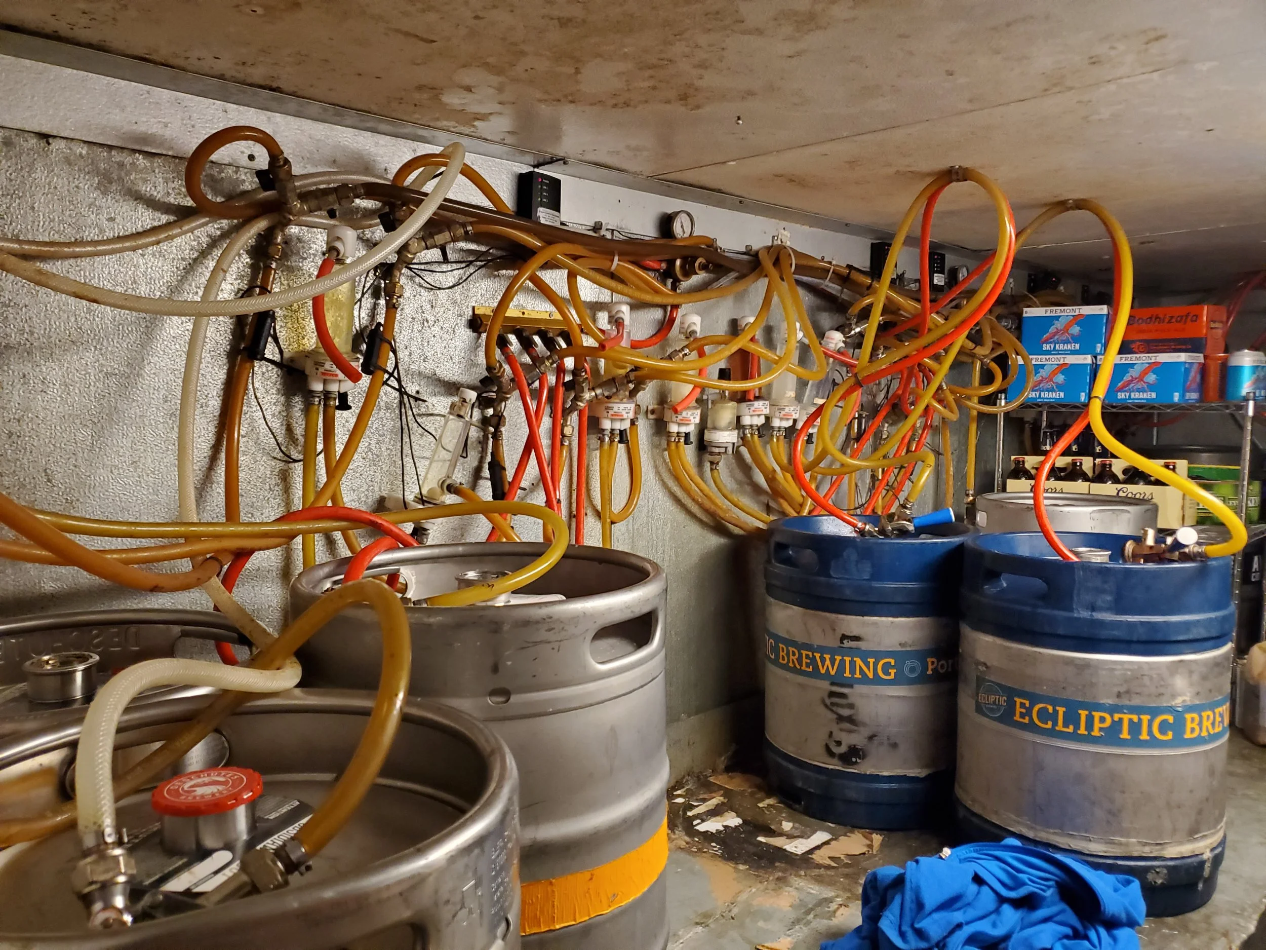 Draft system in dire need of new jumper lines and reorganization. Vinyl that is no longer clear and transparent needs to go! If you see yellow tubing, upgrade to polyethylene for increased longevity and more sales.